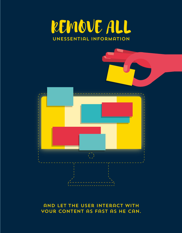 隨著網(wǎng)絡(luò)的膨脹和網(wǎng)絡(luò)空間的飽和度的增加,設(shè)計(jì)和策劃人員也開始在網(wǎng)頁的個(gè)性化瀏覽上下功夫,添加更多具備“排他性”的特性。你要學(xué)會(huì)移除非必須的信息,讓用戶可以盡可能快地同你的網(wǎng)頁內(nèi)容進(jìn)行交互。